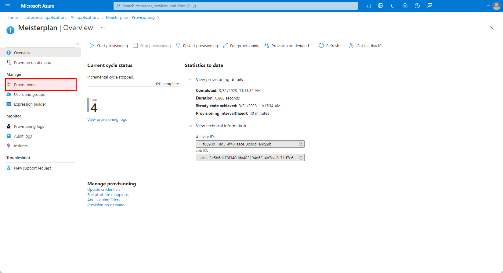 Um Ihre Meisterplan-Benutzer per Autoprovisionierung zu verwalten, legen Sie Meisterplan zuerst als Unternehmensanwendung in Entra ID an. Hier erfahren Sie, wie das geht.