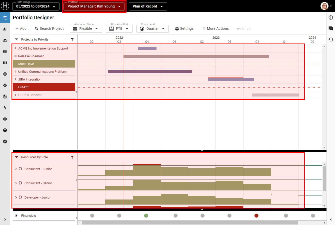 - The selected portfolio filters the selected scenario or the Plan of Record:
